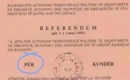 Referendumi i mbajtur më 1 dhe 2 mars 1992 në tri komunat shqiptare – Preshevë, Bujanoc dhe Medvegjë – shënon një nga momentet më të rëndësishme të historisë së shqiptarëve në Luginën e Preshevës.