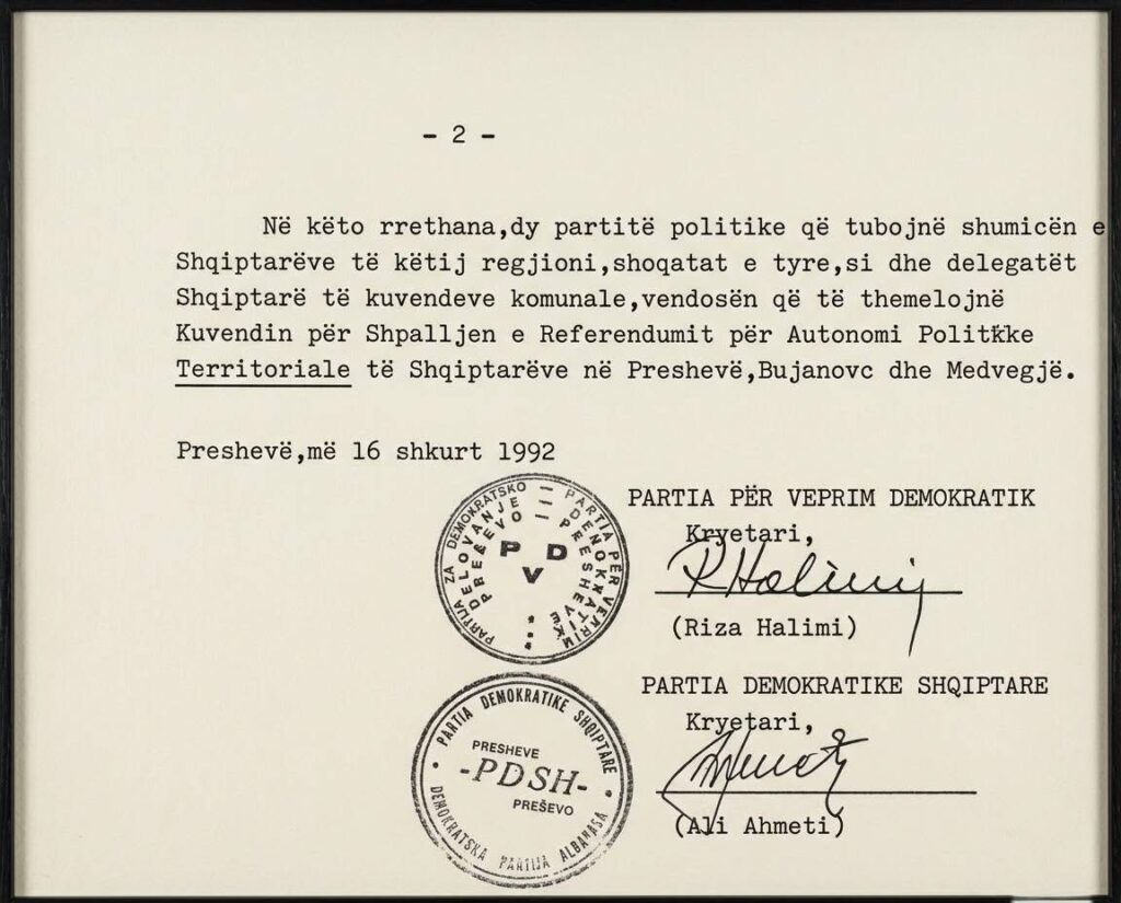 Para 30 vitesh, shqiptarët e Luginës së Preshevës, në rrethana të jashtëzakonshme dhe në vigjilje të shkatërrimit të ish-Republikës Socialiste Federative të Jugosllavisë, ndërmorën hapin më të rëndësishëm politik të historisë së tyre moderne: organizimin e Referendumit të 1 dhe 2 marsit 1992. Ky Referendum u shndërrua në gur themeli të organizimit të shqiptarëve të Medvegjës, Bujanocit dhe Preshevës, duke u bërë dokumenti politik më i rëndësishëm i kësaj krahine. Popullata shqiptare u deklarua për autonomi politike e territoriale me të drejtë bashkimi me Kosovën, duke i dhënë kështu një mesazh të qartë Serbisë, rajonit dhe bashkësisë ndërkombëtare.