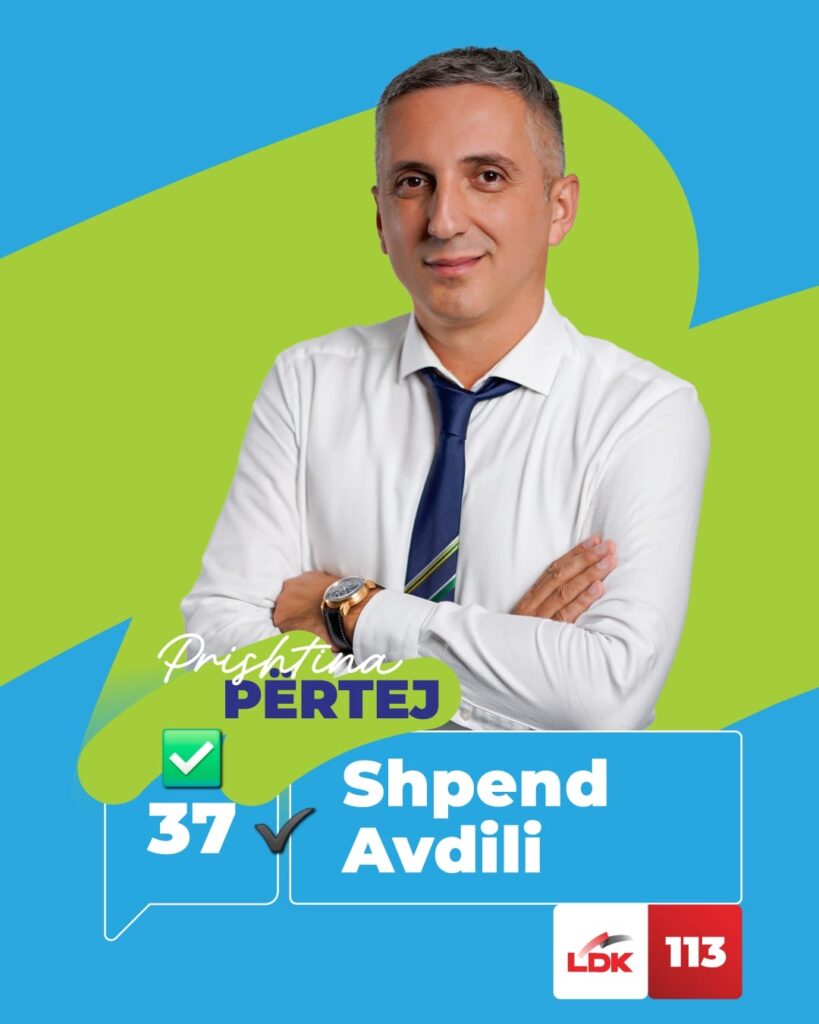 Shpend Avdili, kandidati me numër 37 për Asamblenë Komunale të Prishtinës nga Lidhja Demokratike e Kosovës, njihet si një aktivist i përkushtuar dhe Rugovist i vërtetë. Ai është magjistër i shkencave juridike dhe aktualisht ushtron detyrën e këshilltarit në kabinetin e kryetarit të Prishtinës, Përparim Rama.