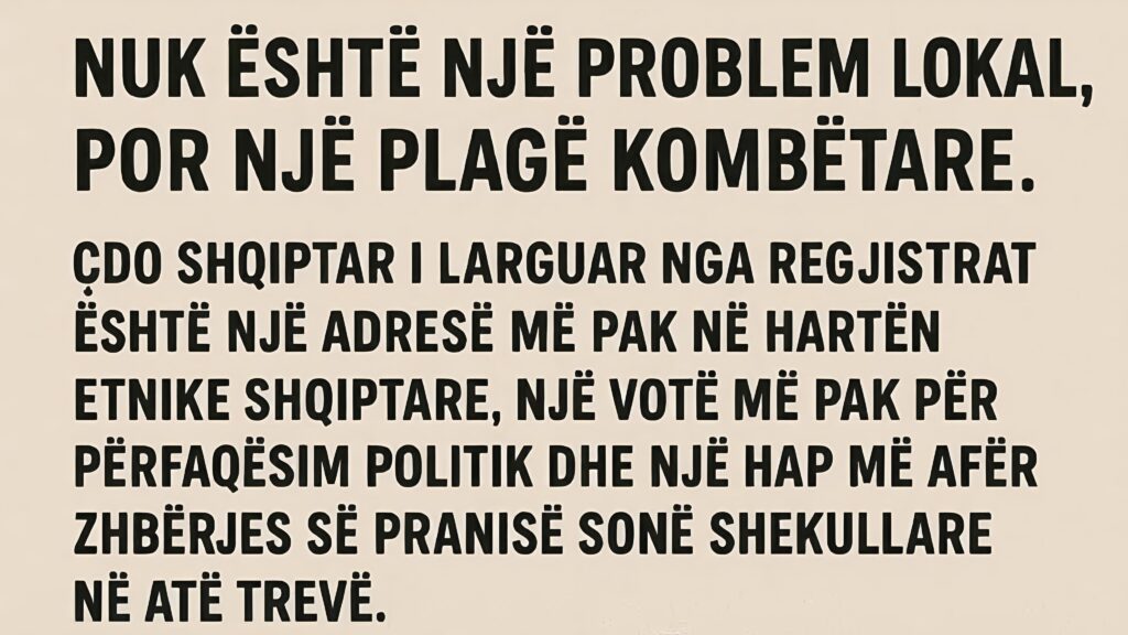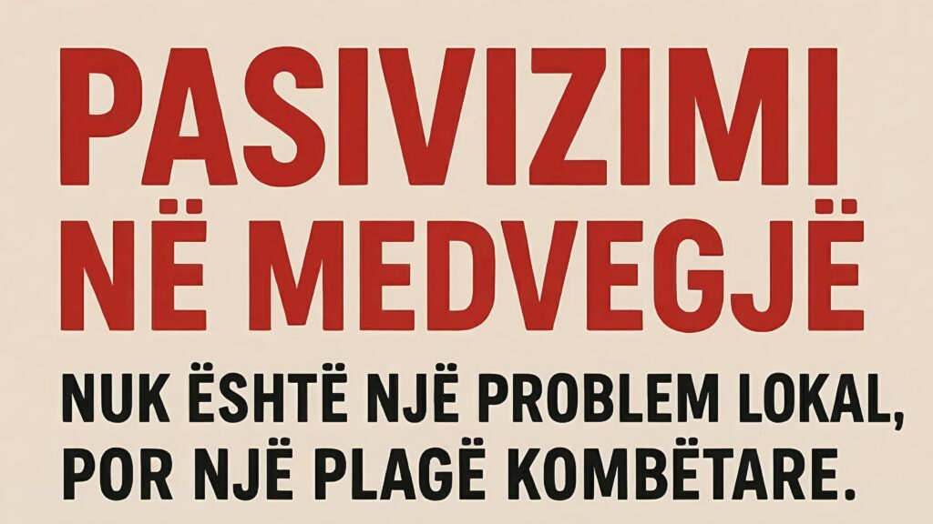 Pse është kjo çështje kombëtare? – Pasivizimi në Medvegjë nuk është një problem lokal, por një plagë kombëtare. Çdo shqiptar i larguar nga regjistrat është një adresë më pak në hartën etnike shqiptare, një votë më pak për përfaqësim politik dhe një hap më afër zhbërjes së pranisë sonë shekullore në atë trevë.